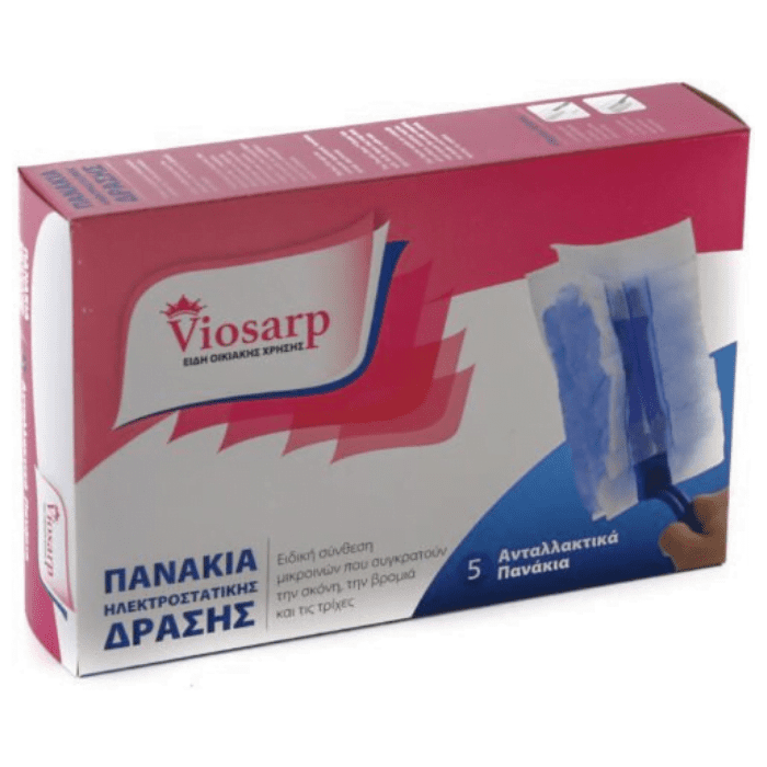Ανταλλακτικά πανάκια ξεσκονίσματος 5 τεμάχια της εταιρίας Viosarp. Τα πανάκια αποτελούνται από ειδική σύνθεση μικροϊνών που συγκρατούν την σκόνη, την βρομιά και τις τρίχες.