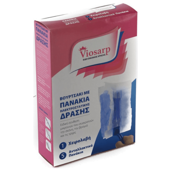 Φτερό ξεσκονίσματος 5 ανταλλακτικά πανάκια της εταιρίας Viosarp. Τα πανάκια αποτελούνται από ειδική σύνθεση μικροϊνών που συγκρατούν την σκόνη, την βρομιά και τις τρίχες.