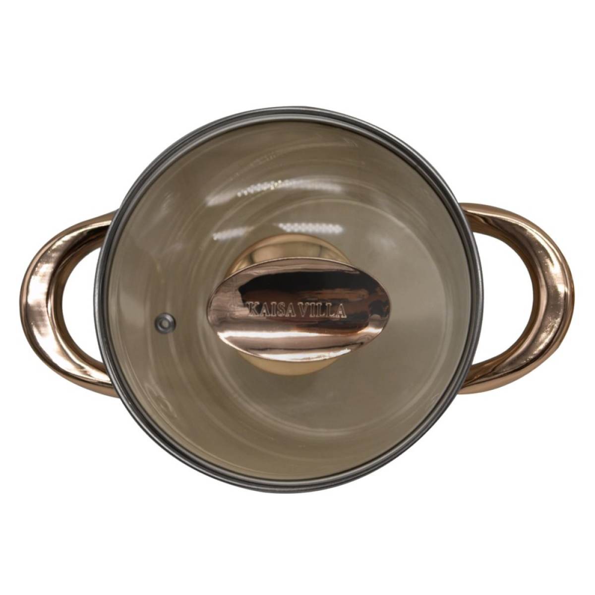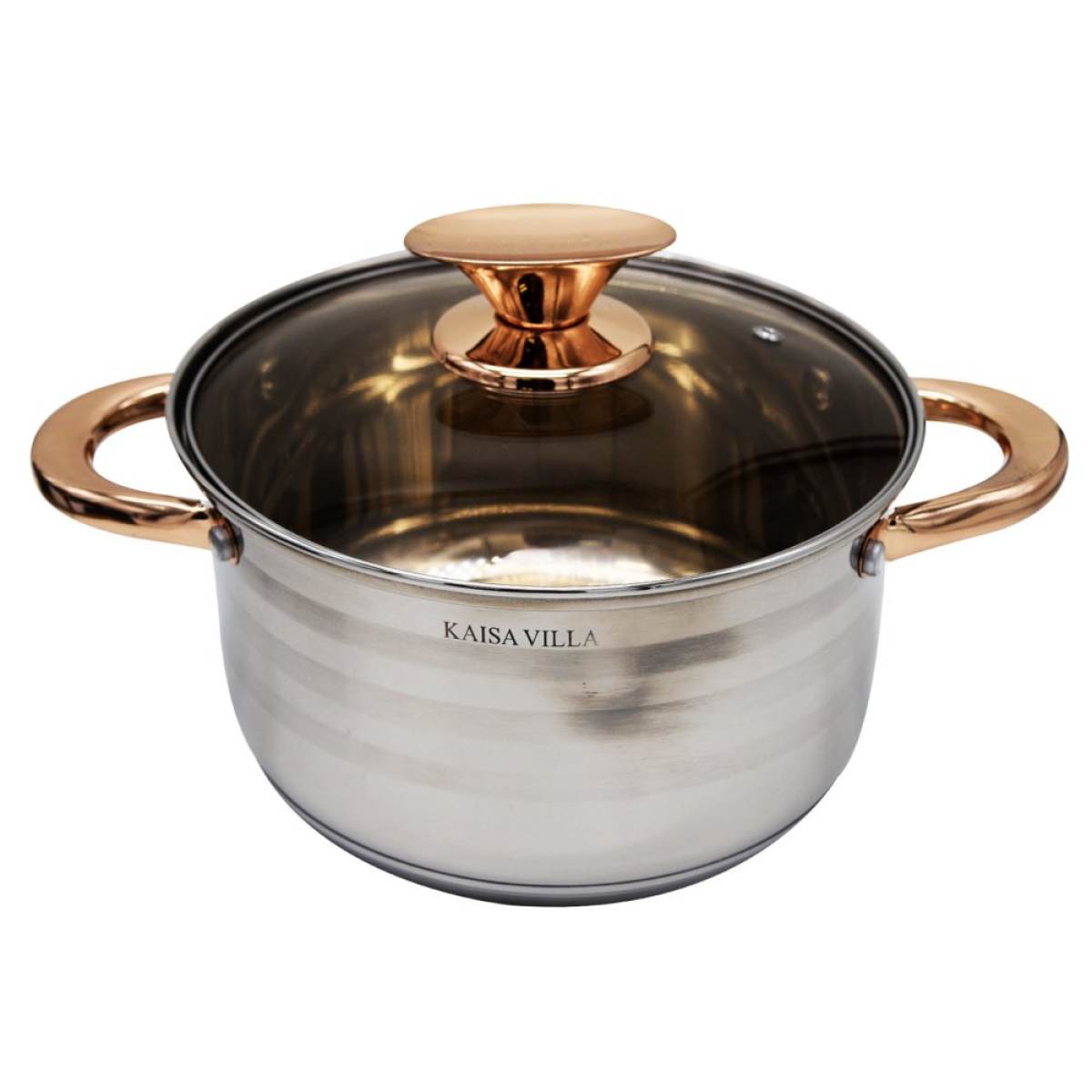 Κατσαρόλα της KAISA VILLA designed by Switzerland από ανοξείδωτο ατσάλι με γυάλινα καπάκια και τρυπούλα για διαφυγή των υδρατμών.