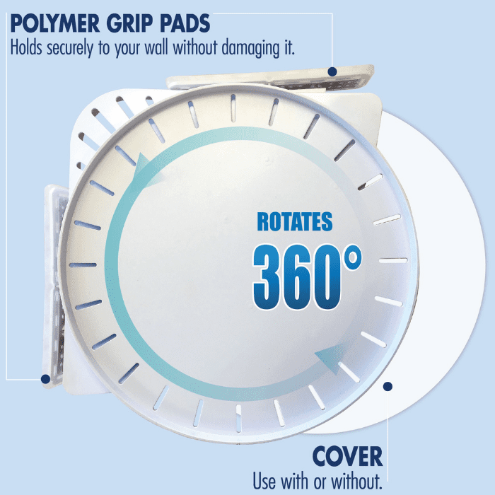- Τοποθετείται αμέσως σε οποιαδήποτε γωνία τοίχου και στην επιφάνεια χρησιμοποιώντας το Σύστημα αναρρόφησης Gripology.