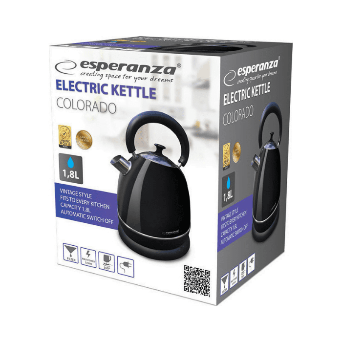 Ο βραστήρας Colorado της εταιρίας Esperanza είναι μια ρέτρο συσκευή με κομψό σχεδιασμό και vintage λεπτομέρειες που θα ταιριάξει ιδανικά σε κάθε κουζίνα! Είναι κατασκευασμένος από ανοξείδωτο ατσάλι και από πλαστικό υψηλής ποιότητας. Θερμάινει γρήγορα το νερό και απενεργοποιείται αφού φτάσει σε σημείο βρασμού.